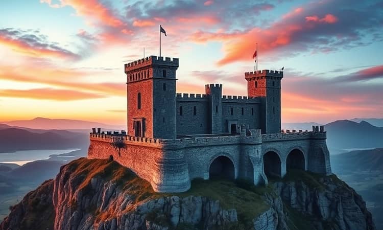 Un castillo inexpugnable se erige con murallas robustas, torres elevadas y un foso profundo. Cada uno de esos elementos representa aspectos clave de tus fortalezas: la resiliencia, la visión positiva y los límites emocionales.
